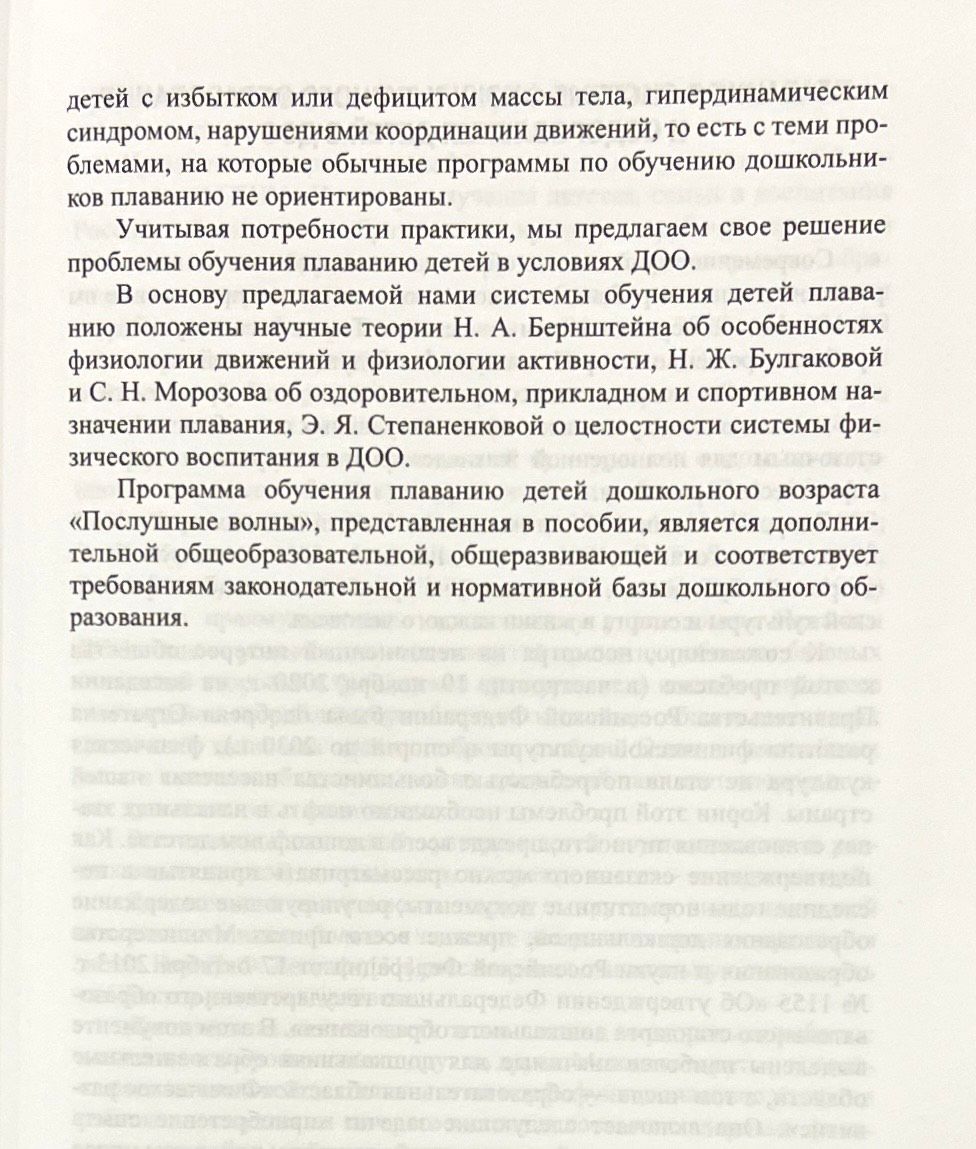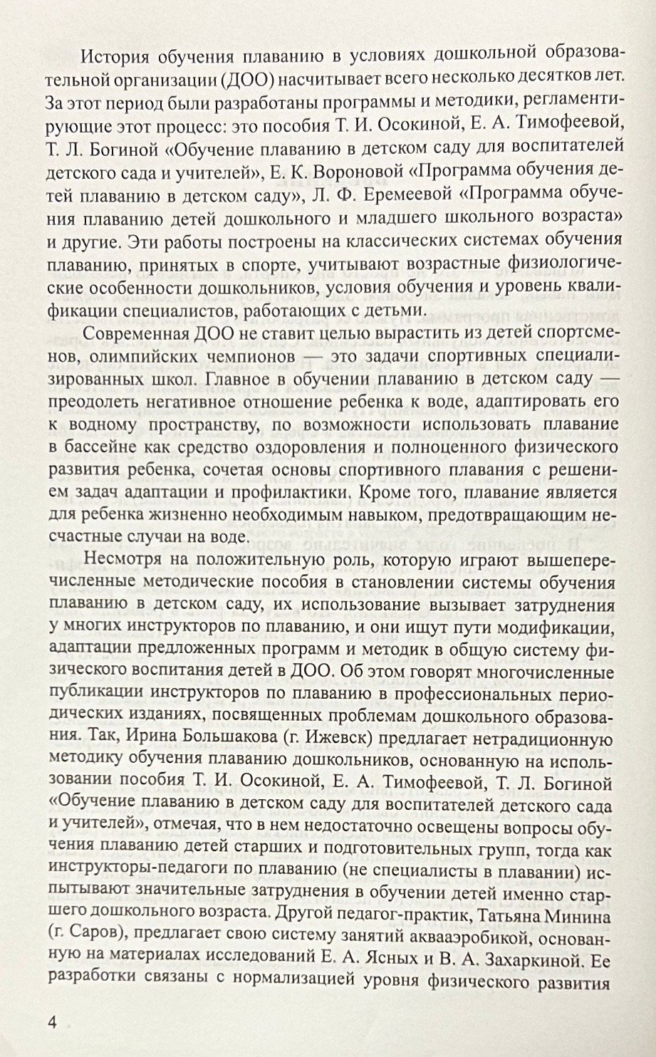 В пособии предлагаются теоретические и методические основы обучения плаванию детей дошкольного возраста в условиях ДОО и ФОК, программа, разработанная на их основе, и методические рекомендации по обучению плаванию детей лет.
