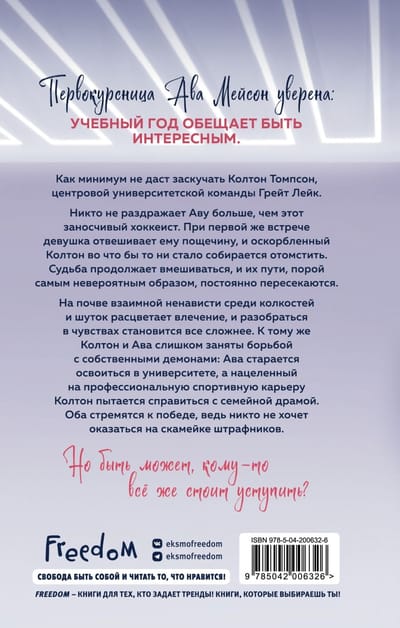 Первокурсница Ава Мейсон уверена: учебный год обещает быть интересным. Как минимум, не даст заскучать Колтон Томпсон, центровой университетской команды Грейт Лейк. Никто не раздражает Аву больше, чем этот заносчивый хоккеист. При первой же встрече девушка отвешивает ему пощечину, и оскорбленный Колтон во что бы то ни стало собирается отомстить. Судьба продолжает вмешиваться, и их пути, порой самым невероятным образом, постоянно пересекаются. На почве взаимной ненависти, среди колкостей и шуток расцветает влечение, и разобраться в чувствах становится все сложнее. К тому же, Колтон и Ава слишком заняты борьбой с собственными демонами: Ава старается освоиться в университете, а нацеленный на профессиональную спортивную карьеру Колтон пытается справиться с семейной драмой. Оба стремятся к победе, ведь никто не хочет оказаться на скамейке штрафников. Но быть может, кому-то все же стоит уступить?