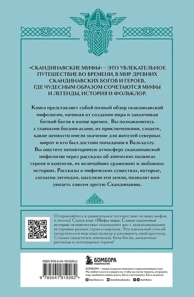 Для всех любителей мифологии и древних легенд! Представляем вам книгу, которая станет настоящим сокровищем в вашей книжной коллекции.«Скандинавские мифы» — это книга, в которой вы найдете подробное описание главных богов, мифических существ и героев, а также увлекательные легенды и истории мира викингов, фьордов и говорящих воронов.Это мифы, легенды и саги, рассказывающие о том, как создавался этот мир, какие ценности были важны в древней скандинавской культуре и какой след конунги, викинги и тролли оставили в современном мире.Вы узнаете о дереве Иггдрасиль, о главных богах-асах, о Вальхалле, дворце во владениях Одина, и о судьбе павших на поле битвы воинах. Вы окунетесь в фантастический мир легендарных героев, любовных историй прекрасных богинь.
