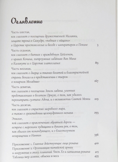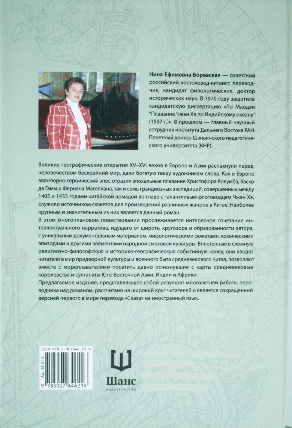 Классический китайский роман, созданный в конце XVI века, повествует о масштабных экспедициях китайской флотилии, во главе которой стоял адмирал Чжэн Хэ - дворцовый евнух, выходец из мусульман. Сведения из документальных материалов, вплетенные в фантастико-приключенческую основу романа и сопровождаемые элементами как религиозно-мифологической, так и народной смеховой культуры, представляют широкую панораму придворной жизни и военных традиций средневекового Китая, стран Южной и Юго-Восточной Азии, Аравийского полуострова и восточного побережья Африки. Сокращенный перевод романа предназначен для широкого круга читателей.
