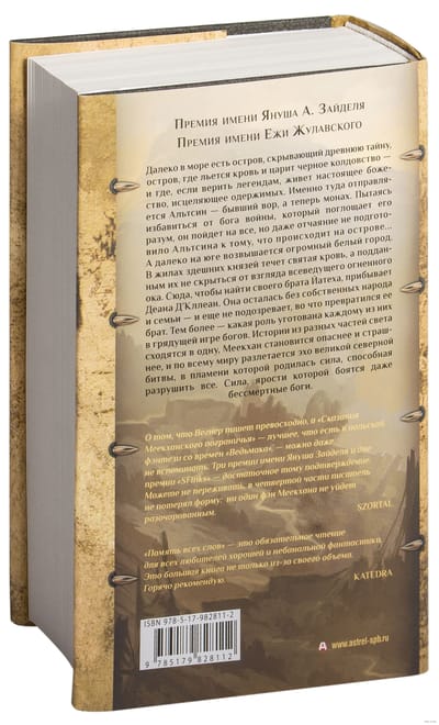 Далеко в море есть остров, скрывающий древнюю тайну, остров, где льется кровь и царит черное колдовство — и где, если верить легендам, живет настоящее божество, исцеляющее одержимых. Именно туда отправляется Альтсин — бывший вор, а теперь монах. Пытаясь избавиться от бога войны, который поглощает его разум, он пойдет на все, но даже отчаяние не подготовило Альтсина к тому, что происходит на острове... А далеко на юге возвышается огромный белый город. В жилах здешних князей течет святая кровь, а подданным их не скрыться от взгляда всеведущего огненного ока. Сюда, чтобы найти своего брата Йатеха, прибывает Деана Д’Кллеан. Она осталась без собственных народа и семьи — и еще не подозревает, во что превратился ее брат. Тем более — какая роль уготована каждому из них в грядущей игре богов.