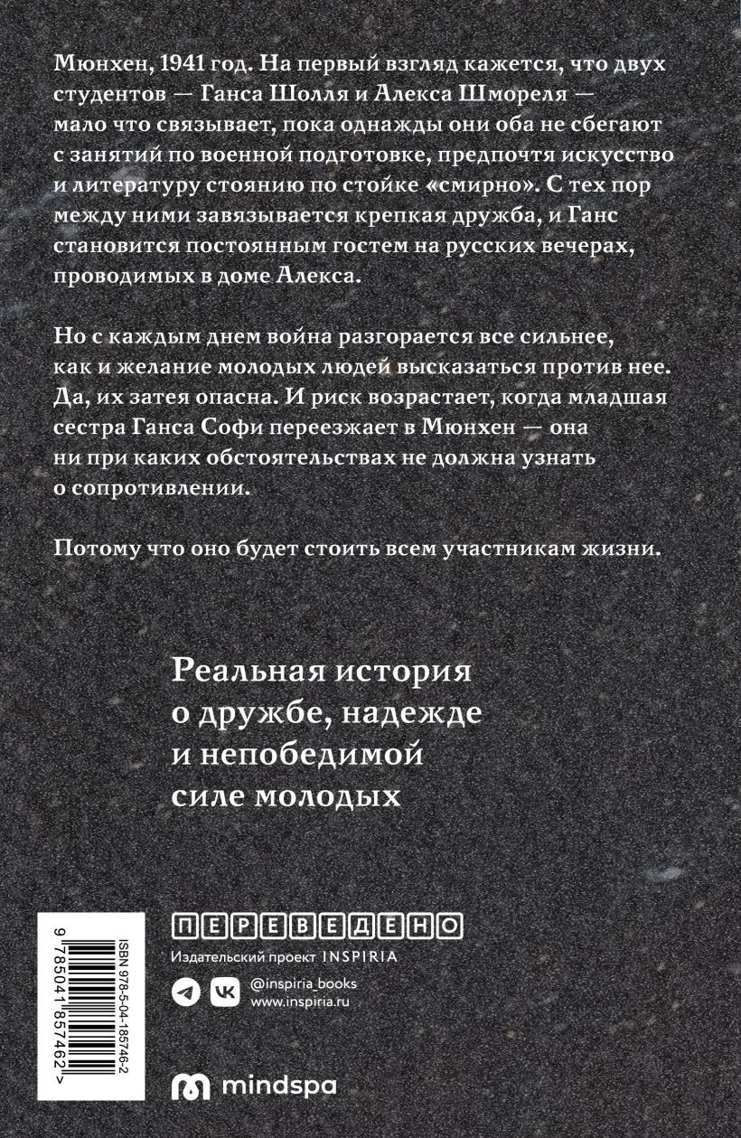 Мюнхен, 1941 год. На первый взгляд кажется, что двух студентов — Ганса и Алекса — мало что связывает, пока однажды они оба не сбегают с занятий по военной подготовке, предпочтя искусство и литературу стоянию по стойке смирно. С тех пор между ними завязывается крепкая дружба, и Ганс становится постоянным гостем на русских вечерах, проводимых в доме Алекса. Но с каждым днем война разгорается все сильнее, как и желание молодых людей высказаться против нее. Да, их затея опасна. И риск возрастает, когда младшая сестра Ганса Софи переезжает в Мюнхен — она ни при каких обстоятельствах не должна узнать об их плане…