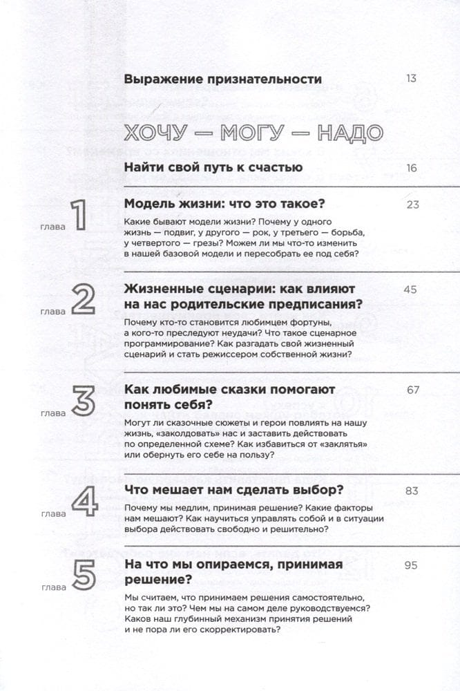 Эта книга объединяет в себе два бестселлера Марины Мелия, посвященные психологии успеха и эффективной коммуникации — «Хочу — Могу — Надо. Узнай себя и действуй» и «Всё не так. Как выбираться из тупиков общения, в которые мы сами себя загоняем».