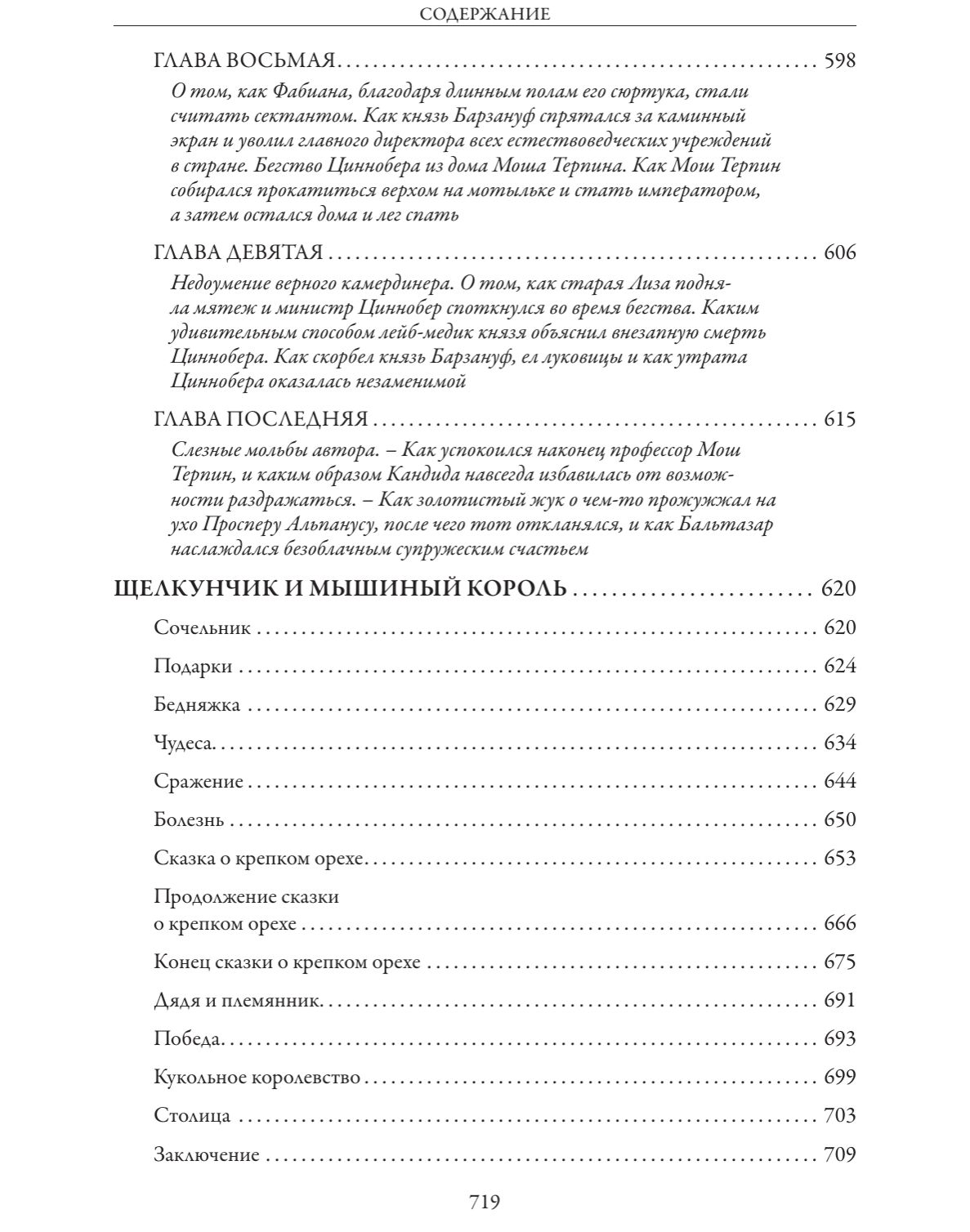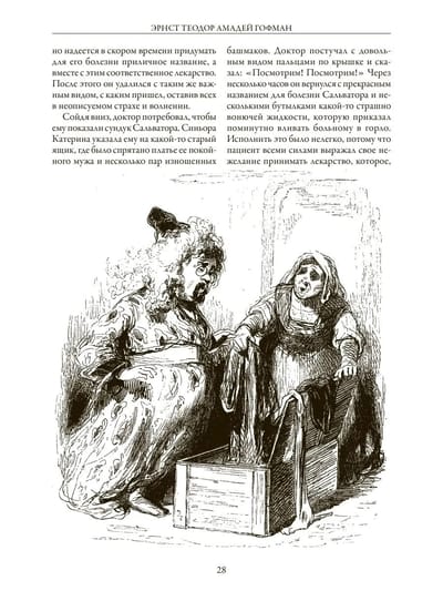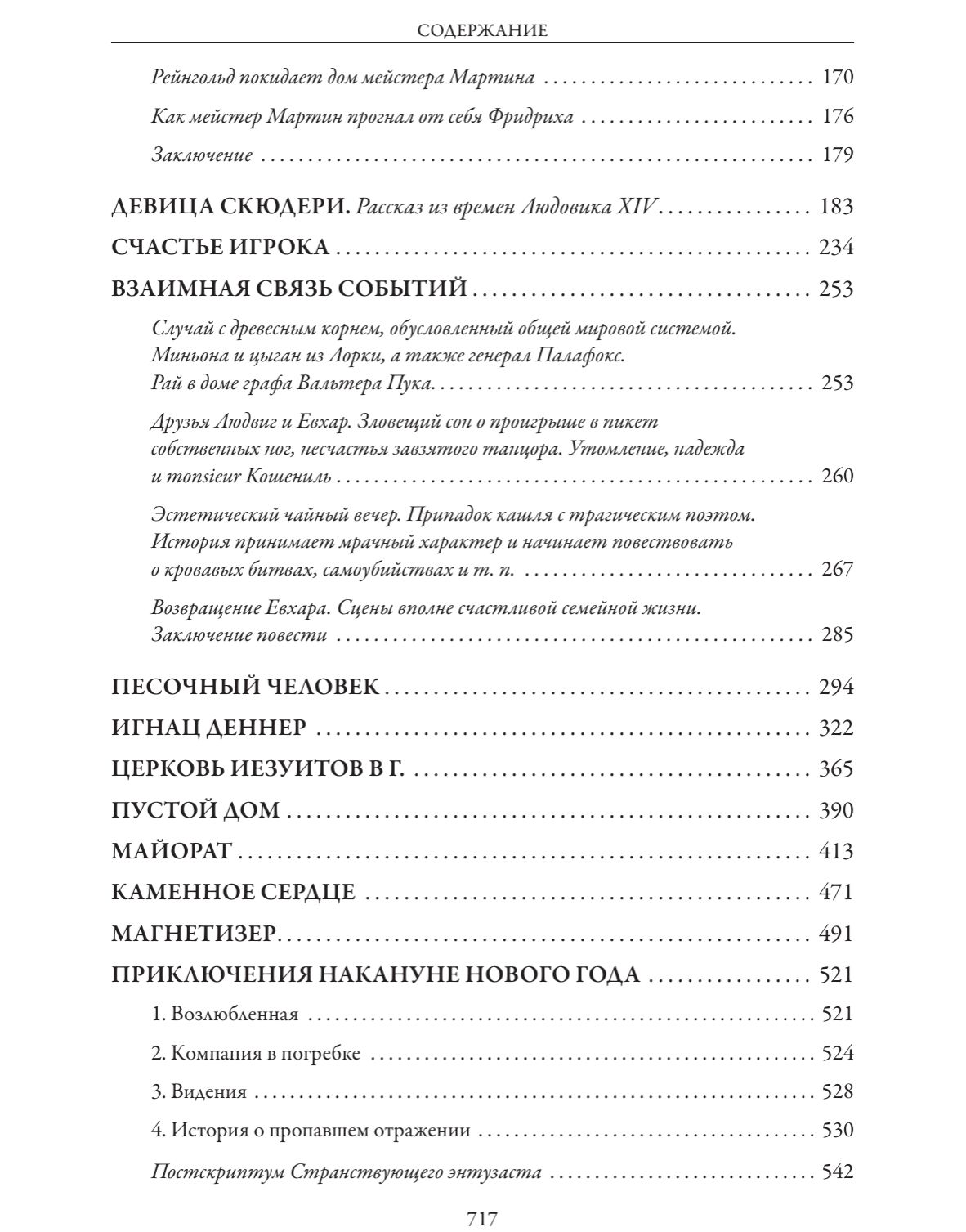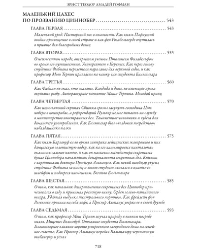 Сборник включает четырнадцать новелл и повестей знаменитого немецкого писателя-романтика Эрнста Теодора Гофмана, а также четыре его сказочные повести: «Щелкунчик и Мышиный король», «Песочный человек», «Маленький Цахес по прозванью Циннобер» и «Приключения накануне Нового года». Все тексты даны в переводе З. А. Вершининой. Издание украшают рисунки французских художников XIX в. Поля Гаварни и Шарля Д’Арну, писавшего под псевдонимом Берталь.