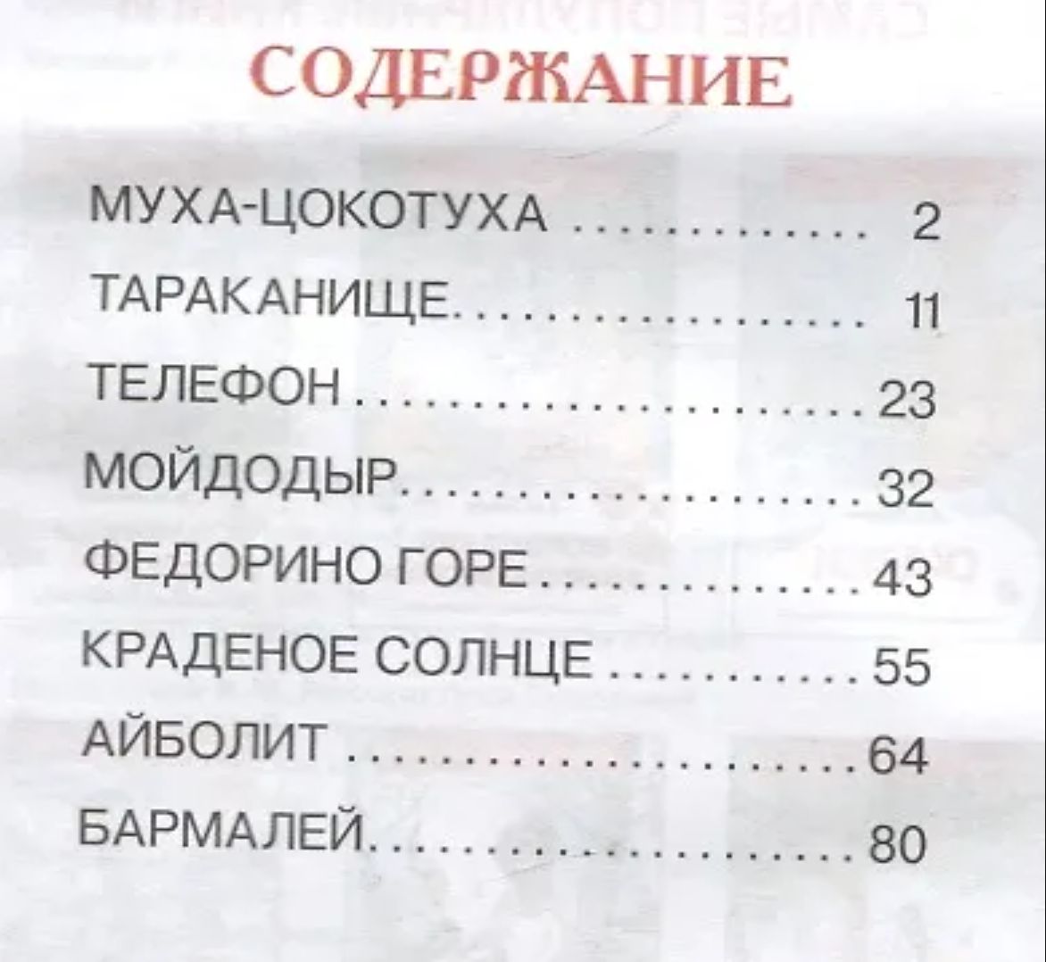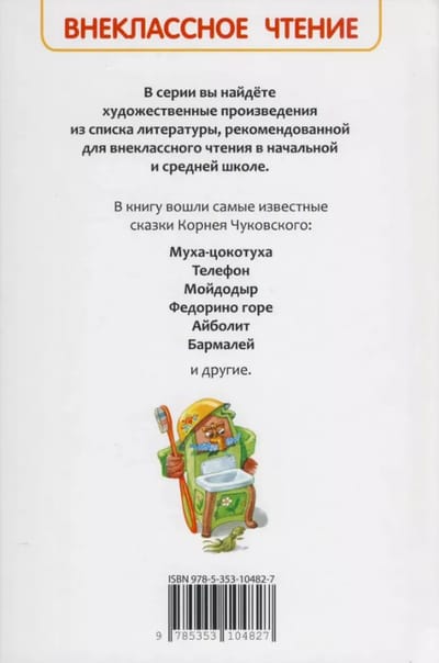 Вот уже почти сто лет дети с удовольствием читают замечательные сказки Корнея Чуковского. Веселые и ритмичные строки Чуковского легко запоминаются и остаются с нами на всю жизнь. В сборник вошли самые известные сказки: «Муха-цокотуха», «Телефон», «Мойдодыр», «Айболит», «Бармалей» и другие.