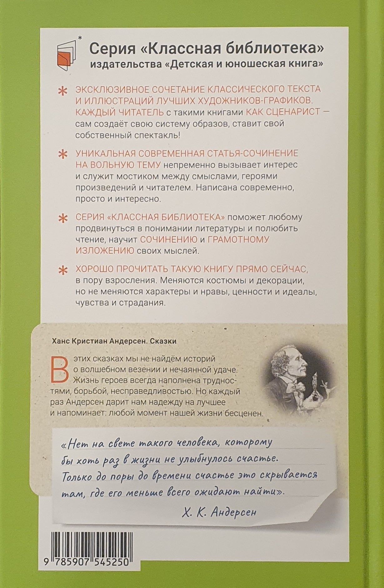 В книгу вошли избранные сказки, пожалуй, самого известного сказочника в мире Ханса Кристиана Андерсена (1805 - 1875). В его произведениях оживают предметы и игрушки, разговаривают растения и животные, волшебство и фантазии сплетаются с реальностью в единое целое, а за кажущейся простотой повествования всегда скрываются очень глубокие мысли. В этих сказках мы не найдём историй о волшебном везении героев, их нечаянной удаче в жизни. Их жизнь может быть наполнена трудностями, борьбой, несправедливостью, богатством, любовью, верой. Но каждый раз Андерсен дарит нам надежду на лучшее и напоминает: любой момент нашей жизни бесценен. Для младшего и среднего школьного возраста.