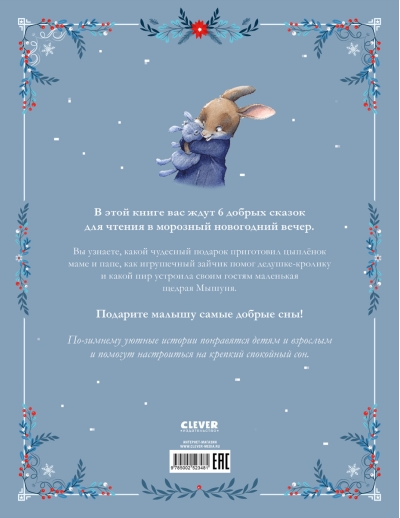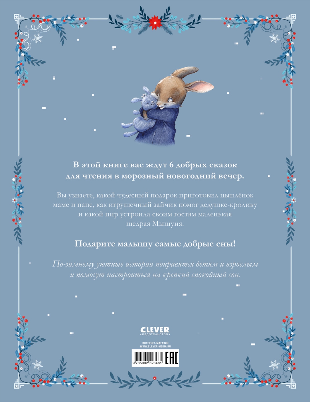 В этой красивой книге вас ждут 6 добрых сказок для чтения в морозный новогодний вечер. Читая детские сказки книги Clever, вы узнаете, какой чудесный подарок приготовил цыпленок маме и папе, как игрушечный зайчик помог дедушке-кролику и какой пир устроила своим гостям маленькая щедрая Мышуня. Читайте «Бабушкины сказки на Новый год», которые выпустило издательство Clever, готовьтесь к Новому году и дарите малышу самые добрые сны!