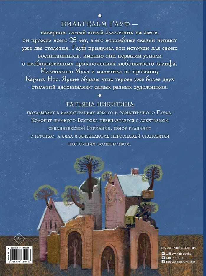 Может быть поэтому сказки Вильгельма Гауфа легко преодолели два столетия и по‑прежнему радуют и детей, и взрослых. В сборник вошли сказки Калиф‑аист, Маленький Мук и Карлик Нос в переводе Михаила Салье. Яркие иллюстрации Татьяны Никитиной передают атмосферу магии и волшебства.