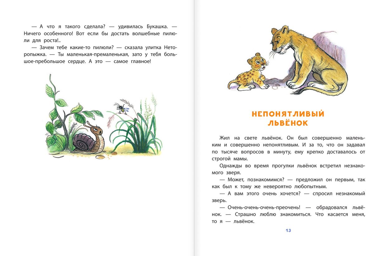 Михаил Пляцковский — известный поэт, автор песен и сказок. В нашу книгу вошли его сказки: «Ромашки в январе», «Босолапки на кожаном ходу», «Разноцветные зверята», «Солнышко на память» и многие другие. А ещё в книгу вошла сказочная повесть для малышей «Дневник кузнечика Кузи». И хотя герои этих произведений — зверята и букашки, ведут они себя как люди: ссорятся и мирятся, учатся дружить и помогать друг другу в беде. Эти добрые сказки научат малыша быть смелым и отзывчивым, а зверята на собственном примере покажут, что может случиться, если лениться или жадничать. Рисунки В. Сутеева. Для дошкольного возраста.