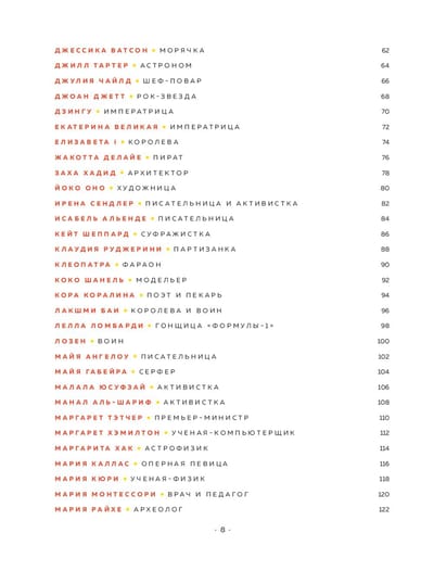 Что, если принцесса не вышла замуж за прекрасного принца, а вместо этого решила полететь в космос? В этой книге собрано 99 сказок про 99 великих женщин, иллюстрированные 60 художниками со всего света. Эти сказки основаны на биографиях реальных женщин, совершенно разных – от балерин до космонавтов, от древних королев до современных законодательниц моды. Коко Шанель, Мария Кюри, королева Елизавета и многие другие – всех их объединяет то, что они не боялись быть первыми, открывать новое и достигать поставленных целей. Каждая из них добилась успеха в своем деле и помогла множеству людей обрести веру в себя – и все это своими силами. Теперь, изложенные в простой и сказочной форме, эти рассказы лежат перед вами, чтобы служить доказательством простого факта: ничего невозможного нет, если твердо идти к своей мечте. Последние страницы оставлены для 100 сказки, автором которой можете стать вы сами.