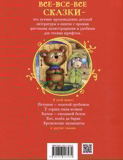 В сборник вошли короткие сказки для самых маленьких. Некоторые из них хорошо знакомы малышам и их родителям: это русские народные сказки «Петушок - золотой гребешок», «Кот и лиса», «Бычок - смоляной бочок». А сказки отечественных авторов - В.Степанова и Э.Мошковской - вы, возможно, прочтете ребенку впервые. Веселые, яркие иллюстрации современной художницы Л. Ношин обязательно понравятся каждому малышу.