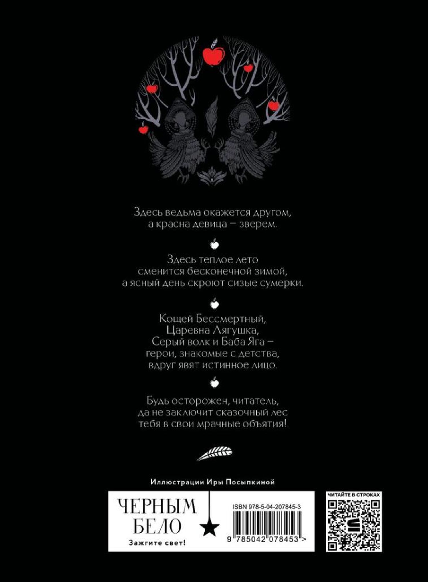 Здесь ведьма окажется другом, а красна девица — зверем. Здесь теплое лето сменится бесконечной зимой, а ясный день скроют сизые сумерки. Кощей Бессмертный, Царевна Лягушка, Серый волк и Баба Яга — герои, знакомые с детства, вдруг явят истинное лицо.