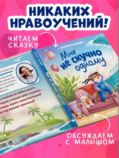 «Мне не скучно одному» — добрая поучительная сказка от известного детского писателя Елены Ульевой. Эта история о тигренке, который боялся и скучал в одиночестве, но потом понял, что играть одному — с самим собой — очень весело. Сначала лапки попросили тигренка поиграть с ними, и он жонглировал и крутил обруч, как в цирке. А потом глазки захотели поиграть, и тигренок стал морским капитаном на корабле из табуреток. Ушки тоже захотели поиграть, а потом тигренок стал петь песенку, да так здорово, что не заметил, как мама вернулась домой!