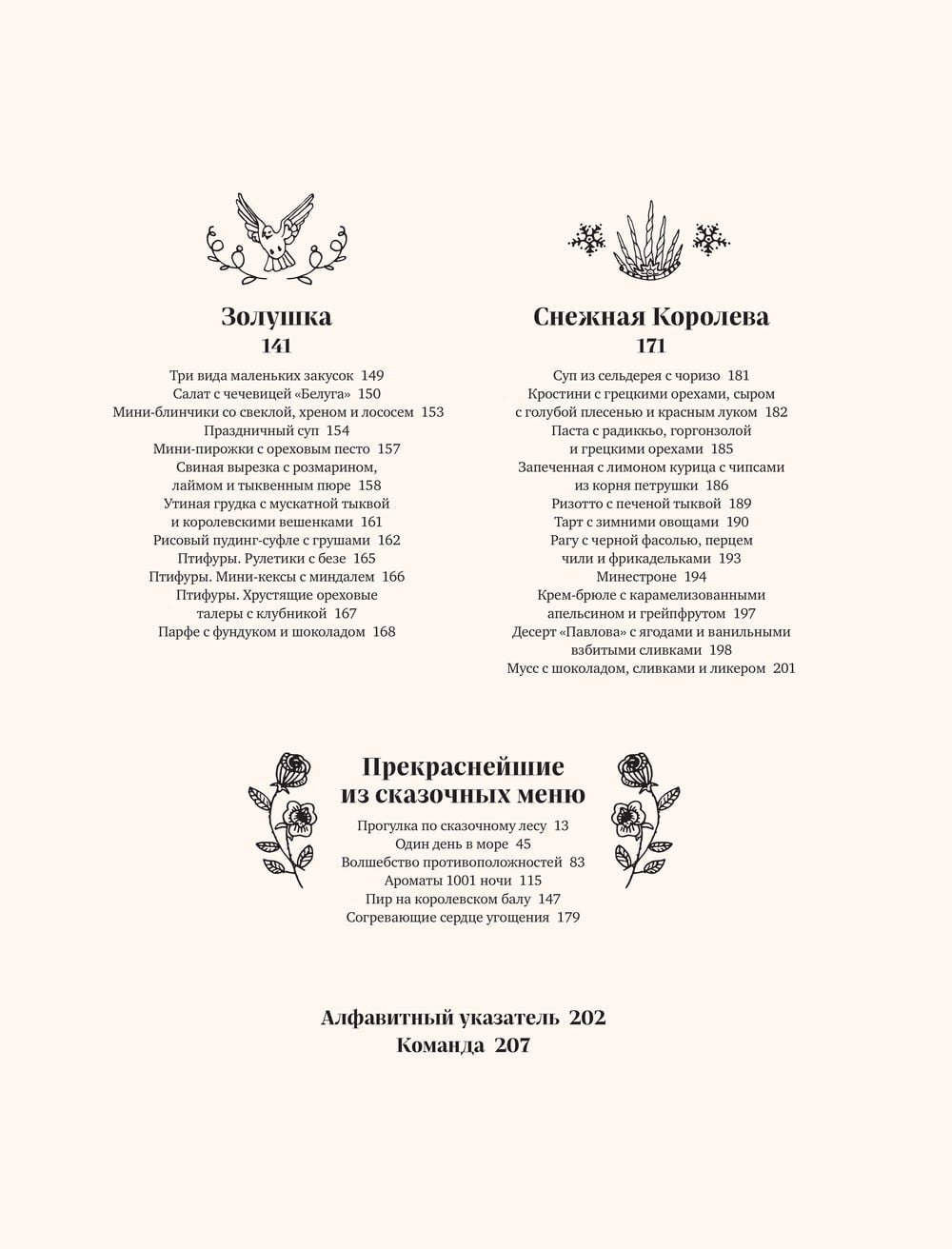 Сказки и рецепты дают возможность посетить другие миры: где, как не на кухне, мы сможем совершить путешествие по разным странам с их уникальными традициями и культурой – и все это за один-единственный ужин! Если вам не терпится побывать в восточной стране из «Алладина и волшебной лампы», можно зажечь свечи и поужинать блюдом восточной кухни. «Красная Шапочка» вдохновит на сытную лесную трапезу, а изысканные блюда помогут перенестись на прием в королевский замок! А что, если вспомнить любимые с детства сказки и совместить их со сказочными рецептами? План таков: сначала вы поудобнее устроитесь на диване и насладитесь волшебными историями, а затем превратите кухню в сказочную страну! В этой книге ореховое жаркое и сытный гуляш сменяются маринованной форелью и карамельным парфе с морской солью. А запеченные персики или сыр - мороженым с базиликом и эспрессо с горячим шоколадом. Изысканно, ярко, вкусно и по-настоящему волшебно!
