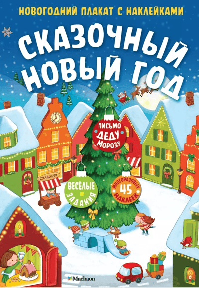 В маленьком городке бурлит предновогодняя суета: дети лепят снеговиков и мчатся с ледяной горки, а взрослые готовят угощения и покупают сладости. Кто-то развешивает гирлянды по карнизам заснеженных домов, кто-то спешит домой с подарками, а кто-то просто радуется предстоящим праздникам. Эту прекрасную картину вы сможете оживить с помощью многоразовых наклеек! Создайте свой новогодний город и отправьте письмо Деду Морозу в Великий Устюг.