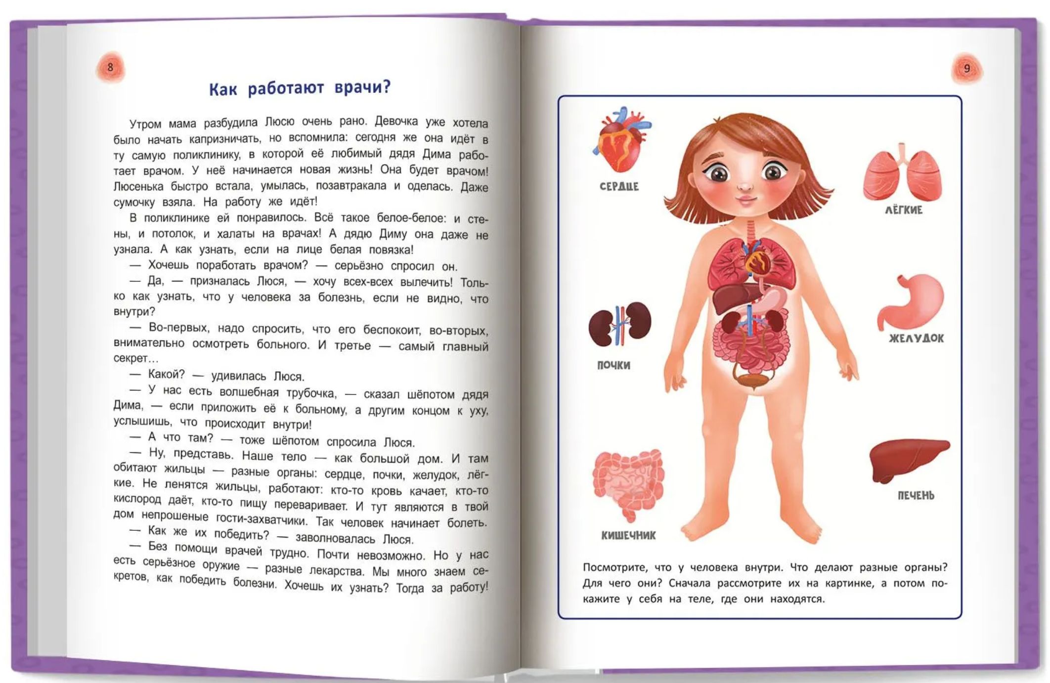 В этой книге ваш малыш вместе с девочкой Люсей, мечтающей стать доктором, найдёт основы знаний по медицине, профилактике болезней, познакомится с работой врачей.