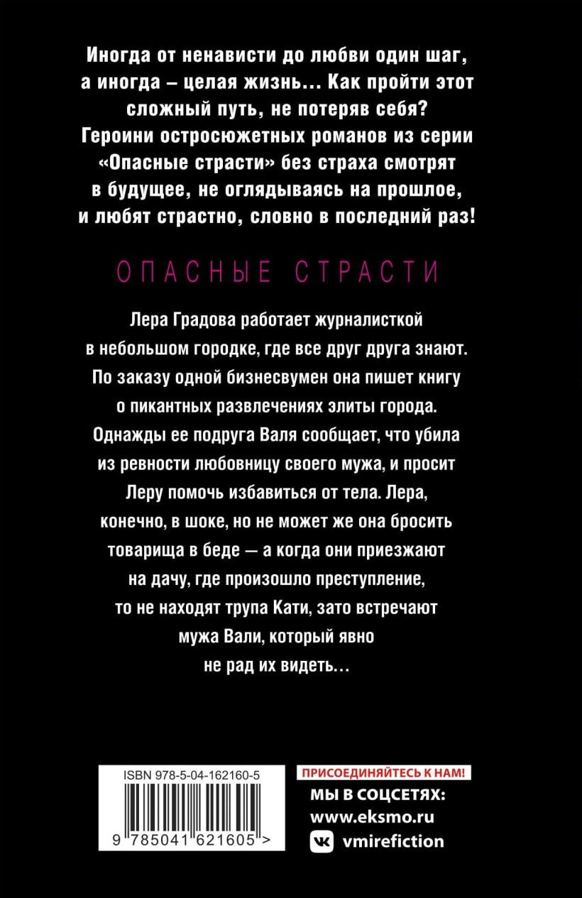 Лера Градова работает журналисткой в небольшом городке, где все друг друга знают. По заказу бизнесвумен она пишет книгу о пикантных развлечениях элиты города. Однажды ее подруга Валя сообщает, что убила из ревности любовницу мужа, и просит Леру помочь избавиться от тела. Лера, конечно, в шоке, но не может же она бросить подругу в беде. Однако когда они приезжают на дачу, где произошло преступление, то не находят труп. Зато встречают мужа Вали, который явно не рад их видеть.