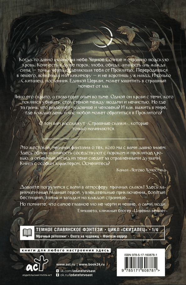 Когда-то давно взошло на небе Черное Солнце и отравило людскую кровь. Коли есть в душе порок: злоба, обида, алчность аль жажда силы, – тонка черта, отделяющая тебя от Проклятых. Переродишься в лешего, волколака или кикимору – и не воротишь уж назад. И только Скиталец, посланник Единой Церкви, может защитить в страшный момент от зла.