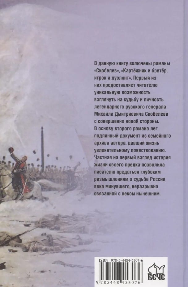 В данную книгу включены романы «Скобелев», «Картёжник и бретёр, игрок и дуэлянт». Первый из них предоставляет читателю уникальную возможность взглянуть на судьбу и личность легендарного русского генерала Михаила Дмитриевича Скобелева с совершенно новой стороны. В основу второго романа лег подлинный документ из семейного архива автора, давший жизнь увлекательному повествованию. Частная, на первый взгляд, история жизни своего предка позволила писателю предаться глубоким размышлениям о судьбе России века минувшего, неразрывно связанной с веком нынешним.