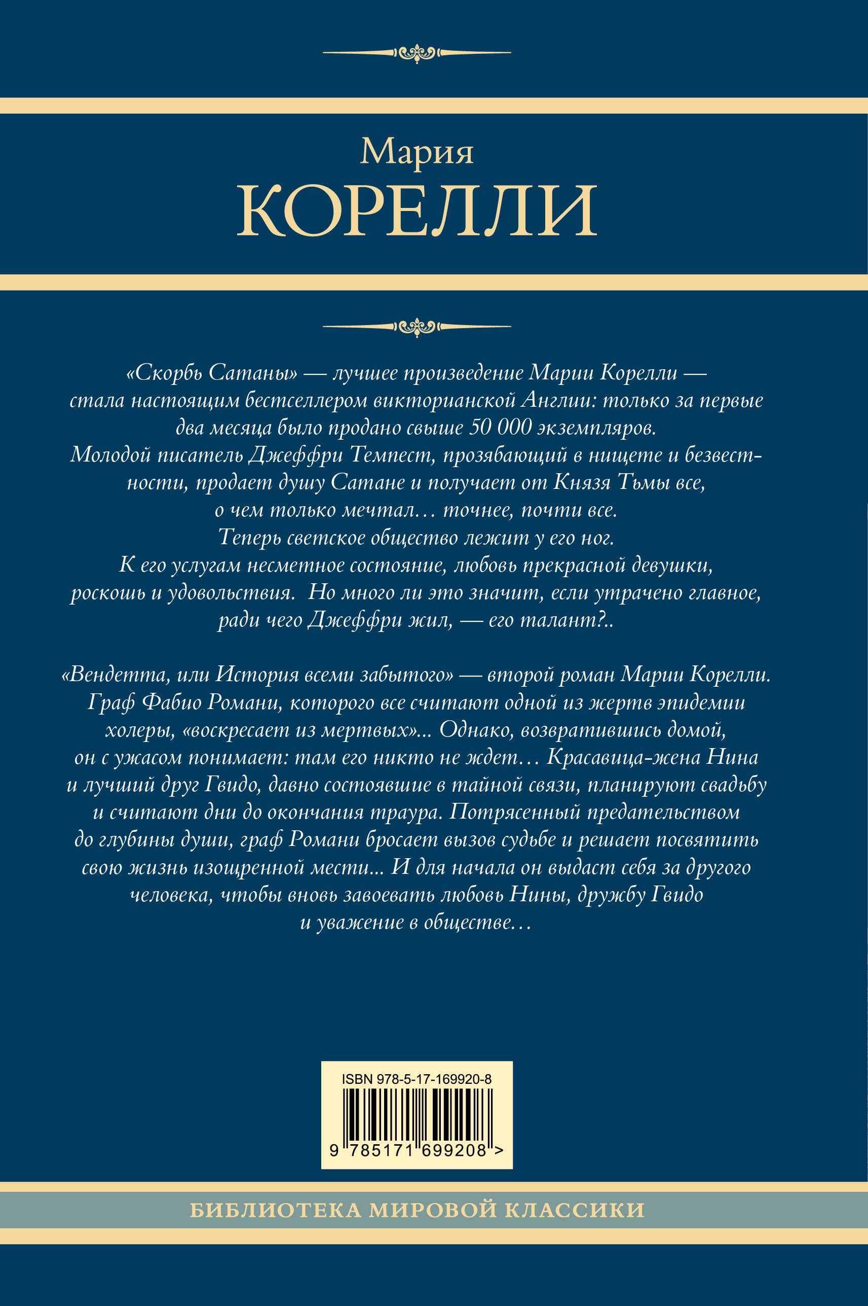 «Скорбь Сатаны», — пожалуй, лучшее произведение Марии Корелли, — стала настоящим бестселлером викторианской Англии.