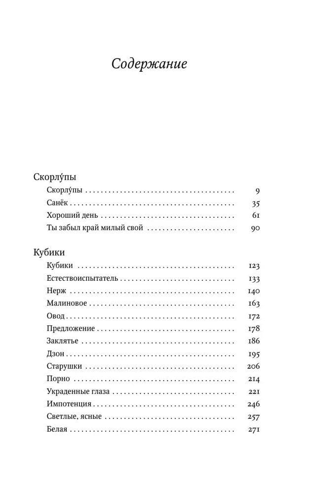 В серии «Читальня Михаила Елизарова» пополнение — сборник «Скорлупы. Кубики». Два цикла под одной обложкой: «Кубики», впервые опубликованные 15 лет назад, и «Скорлупы» — новейшая малая проза одного из самых популярных и неоднозначных современных российских писателей.