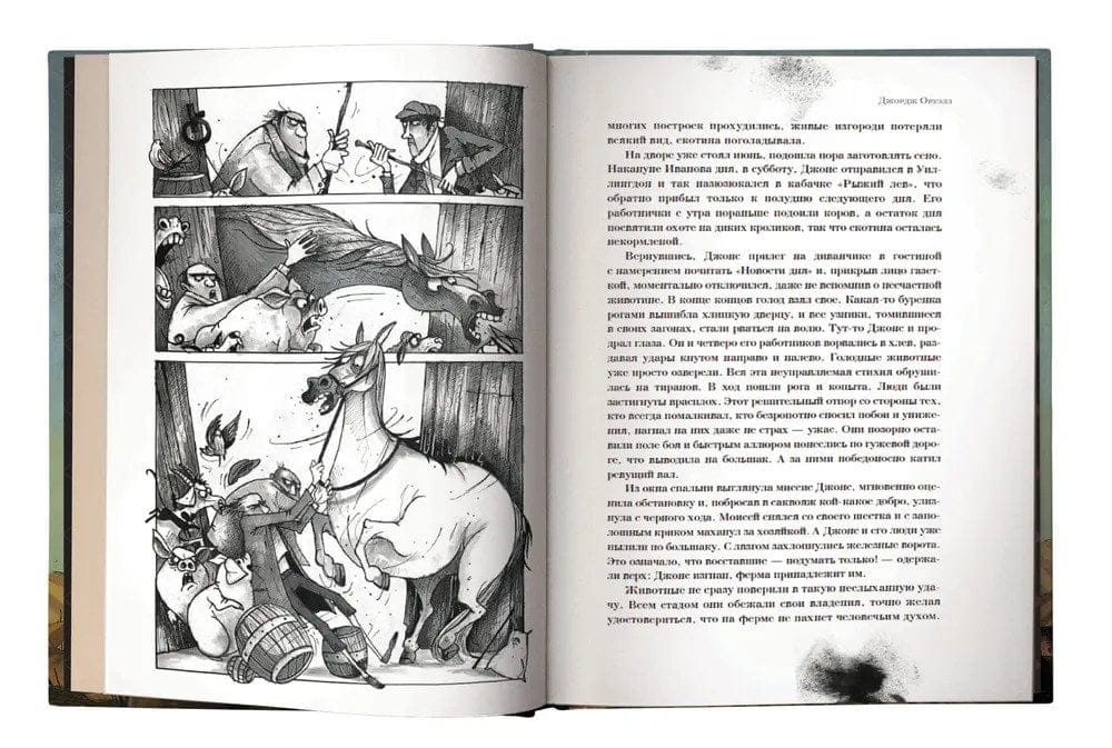 Повесть-притча Джорджа Оруэлла об эволюции общества животных, изгнавших со скотного двора его предыдущего владельца, жестокого мистера Джонса, от безграничной свободы к диктатуре.