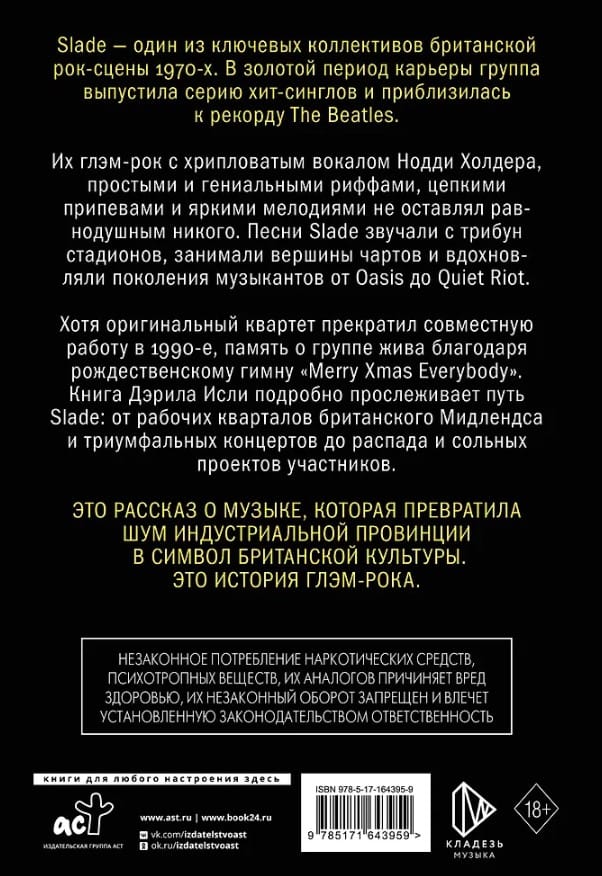 Книга Дэрила Исли подробно прослеживает путь Slade: от рабочих кварталов британского Мидлендса и триумфальных концертов до распада и сольных проектов участников.