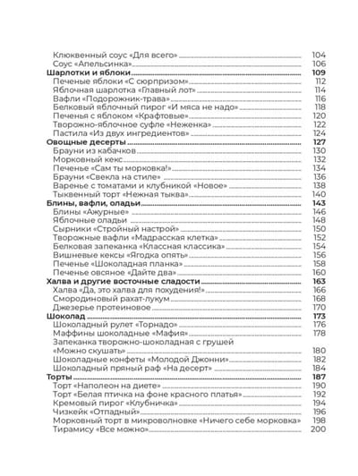 В книге более 70 рецептов, в которых использованы простые и доступные продукты. Каждый рецепт снабжен информацией о калорийности и содержании нутриентов, чтобы читатель мог правильно соотнести десерт с основным приемом пищи. Книга может стать хорошим подспорьем каждому, кто устал от диет и голодовок и готов проверить, может ли правильное питание быть действительно вкусным?