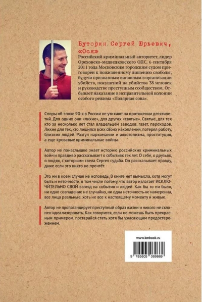 Автор не пропагандирует преступный образ жизни и никого не склонен идеализировать. Как говорится, если не можешь быть прекрасным примером, постарайся стать хотя бы ужасающим предостережением.