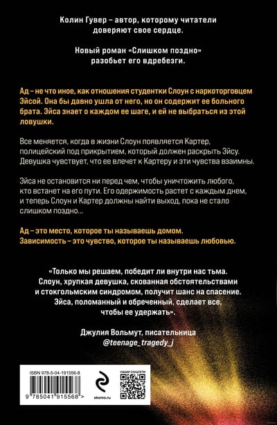 Ад – не что иное, как отношения студентки Слоун с наркоторговцем Эйсой. Она бы давно ушла от него, но он содержит ее больного брата. Эйса знает о каждом ее шаге, и ей не выбраться из этой ловушки.
