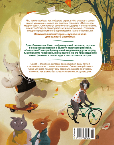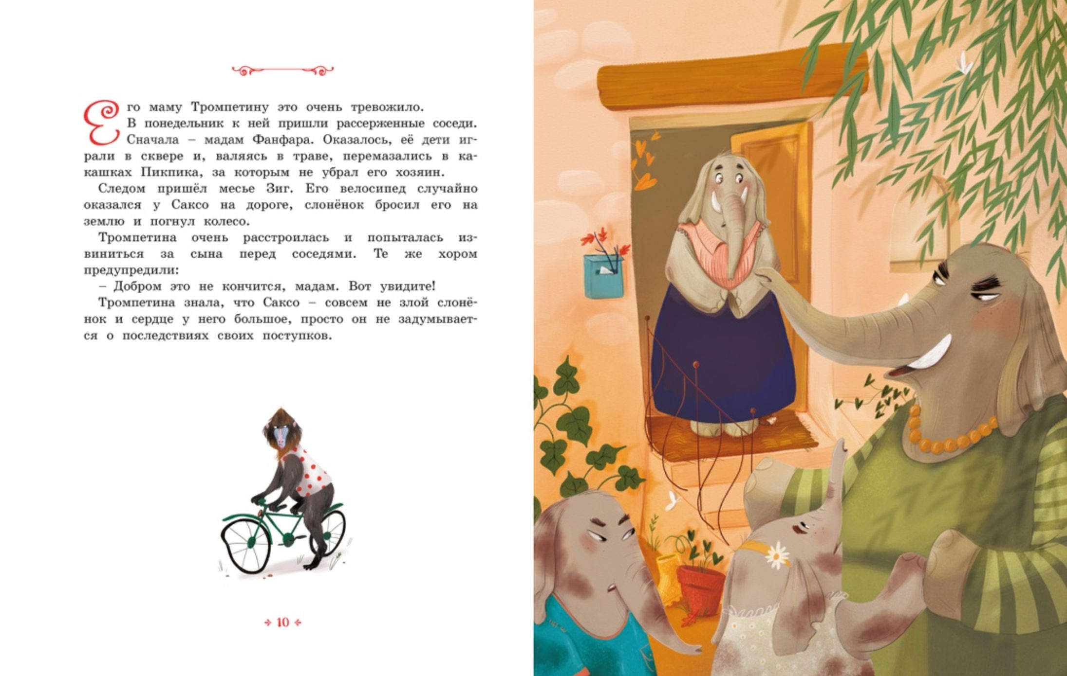 Саксо – слонёнок, который всех обижает, всем грубит и не считается ни с чьими желаниями. Он настоящий эгоист. Сова Минерва поможет ему взглянуть на себя со стороны и понять, как важно быть уважительным к окружающим.