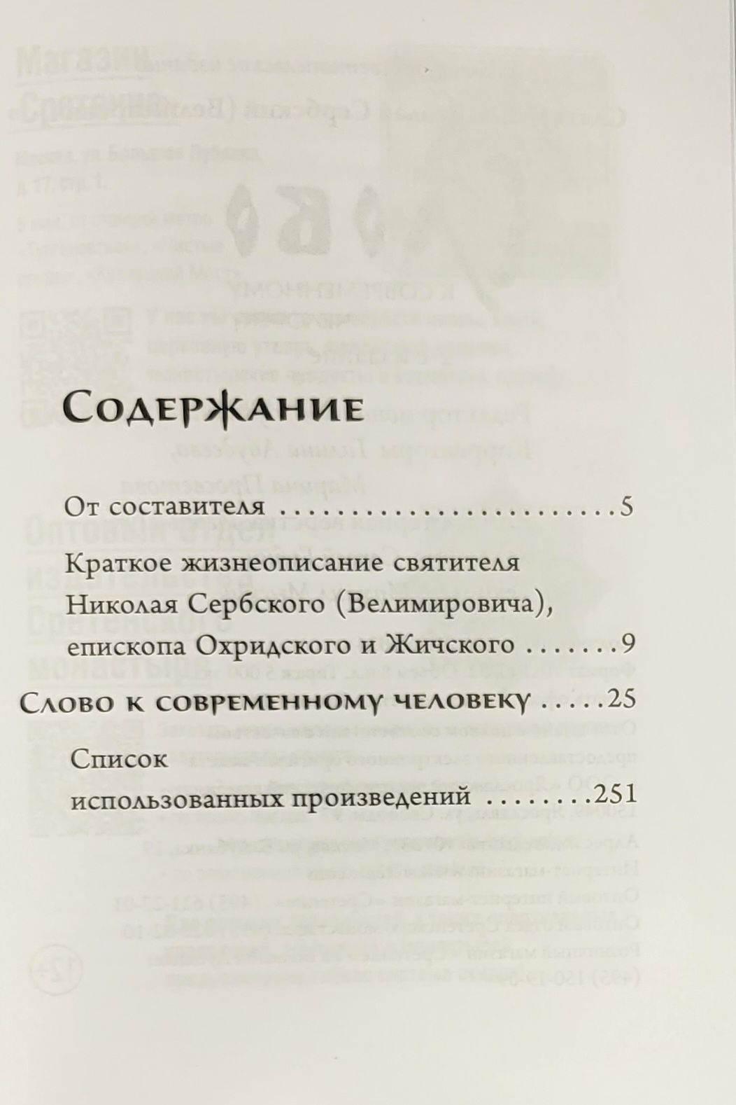В книге собраны выдержки из творений святителя Николая Сербского, затрагивающие наиболее важные вопросы, которые встают перед совестью современного человека. Мысли эти не утратили своей актуальности, они пробуждают наше сознание и укрепляют в вере.