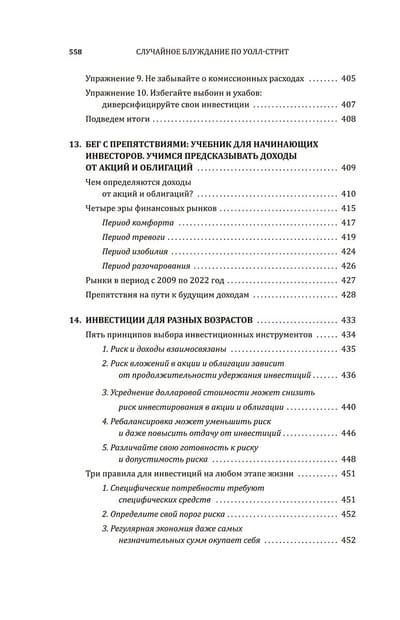 Опираясь на свой опыт экономиста, финансового консультанта и успешного инвестора, Малкиел показывает, почему человек, который последовательно экономит в течение долгого времени и приобретает диверсифицированный портфель, состоящий из паев индексных фондов, может достичь результатов инвестирования выше среднего. Он рассматривает причудливые методы инвестирования, возникшие в последнее время, и критически анализирует криптовалюты, невзаимозаменяемые токены и акции-мемы. Автор рассказывает о том, как избежать чрезмерных налогов в инвестировании и как разобраться в популярных методах управления инвестициями, включая факторное инвестирование, паритет рисков и портфели ESG.