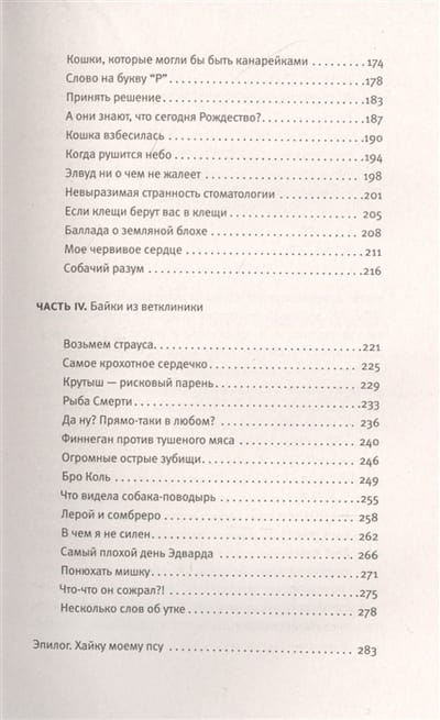 Полные тепла и юмора рассказы ветеринара о буднях небольшой клиники. Это истории не только о лечении хвостатых, зубастых и пернатых, но и о людях, которые “парадоксальным образом раскрываются во всей своей человечности, когда имеют дело с животными”. Автор — опытный врач — за долгую практику поработал с целым зоопарком из пациентов, встретил множество ярких и интересных их владельцев, поражался неожиданным сочетаниям питомец–хозяин и видел примеры настоящей любви и привязанности.