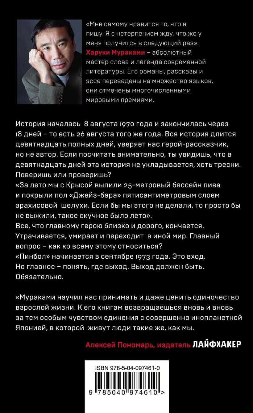 Харуки Мураками (р.1949) – самый известный из ныне живущих японских писателей, автор полутора десятков книг, переведенных на многие языки мира. «Слушай песню ветра» (1979) и «Пинбол 1973» (1983) – два первых романа «Трилогии крысы», знаменитого цикла писателя, завершающегося «Охотой на овец» (1988) и продолженного романом «Дэнс, Дэнс, Дэнс» (1991).