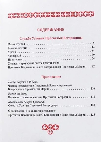 Это издание должно не только помочь священнослужителям и певчим при совершении служб праздника Успения Пресвятой Богородицы, но и дать возможность молящимся следить за ходом службы.