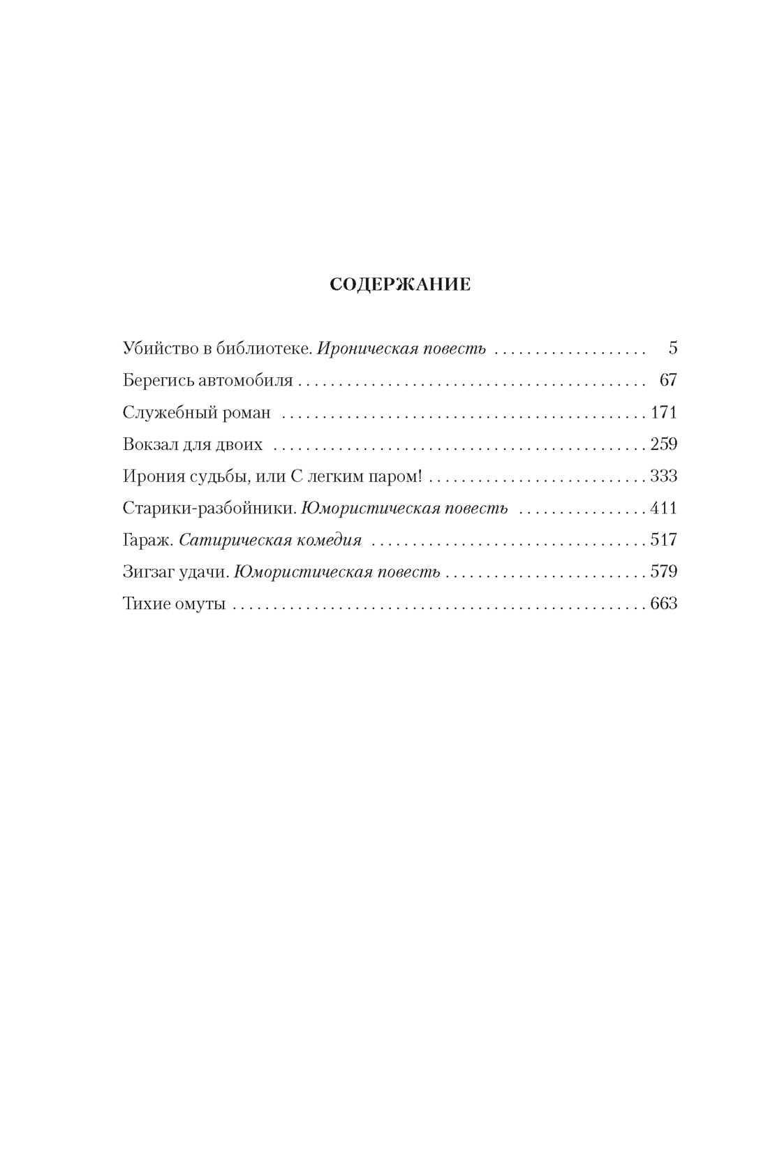 В настоящем издании собраны киноповести и пьесы Рязанова и Брагинского, созданные за долгие годы их творческого и дружеского союза: «Убийство в библиотеке», «Берегись автомобиля», «Служебный роман», «Вокзал для двоих», «Ирония судьбы, или С легким паром!», «Старики-разбойники», «Гараж», «Зигзаг удачи», «Тихие омуты».
