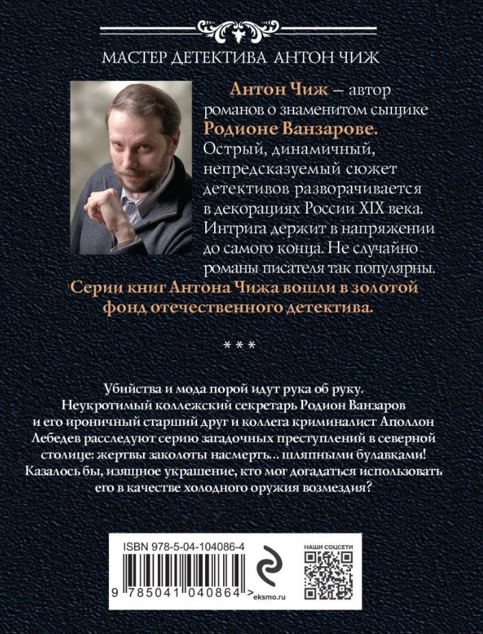 Убийства и мода порой идут рука об руку. Неукротимый коллежский секретарь Родион Ванзаров и его ироничный старший друг и коллега криминалист Аполлон Лебедев расследуют серию загадочных преступлений в северной столице: жертвы заколоты насмерть… шляпными булавками! Казалось бы, изящное украшение, кто мог догадаться использовать его в качестве холодного оружия возмездия?