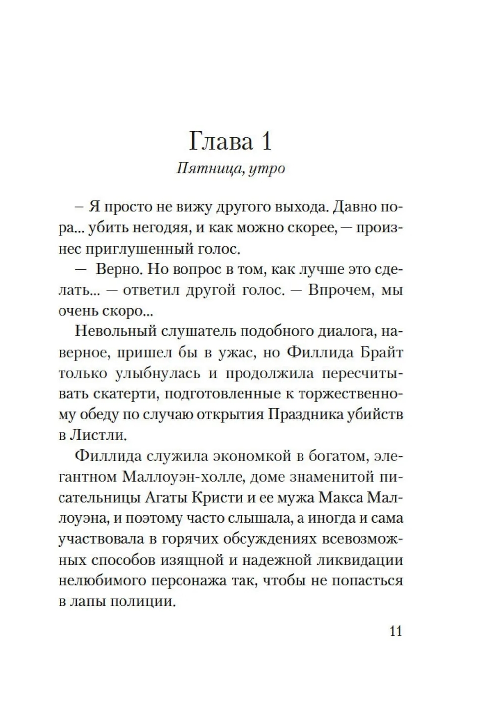 Филлида Брайт служит экономкой в поместье подруги, знаменитой писательницы Агаты Кристи, и сама увлекается детективами. Впрочем, она не одна такая: в близлежащем городке Листли даже организовали клуб начинающих авторов детективов. Но кто же лучший? Клуб объявляет конкурс, а благодаря связям Агаты Кристи в жюри приглашены мастера жанра. Приз — контракт на издание романа-победителя. Но в разгар торжественного открытия Праздника убийств происходит самое настоящее убийство... Неужели кто-то из писателей готов зайти столь далеко ради удовлетворения своих амбиций?
