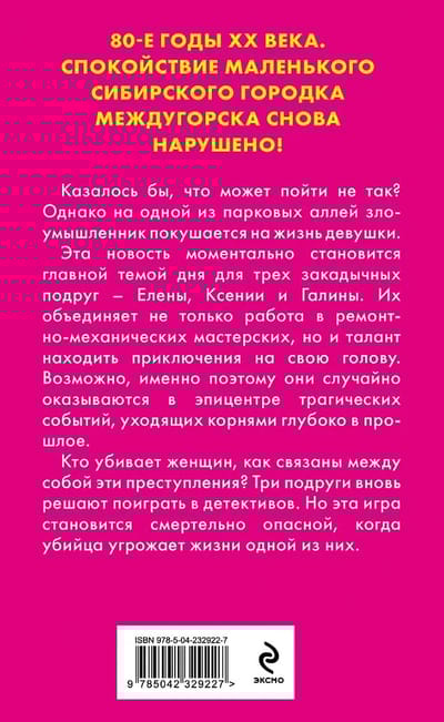 Казалось бы, что может пойти не так? Однако когда на одной из парковых аллей злоумышленник покушается на жизнь девушки, эта новость моментально становится главной темой дня для трех закадычных подруг — Елены, Ксении и Галины. Их объединяет не только работа в ремонтно-механических мастерских, но и талант находить приключения на свою голову. Возможно, именно поэтому они случайно оказываются в эпицентре трагических событий, уходящих корнями глубоко в прошлое.