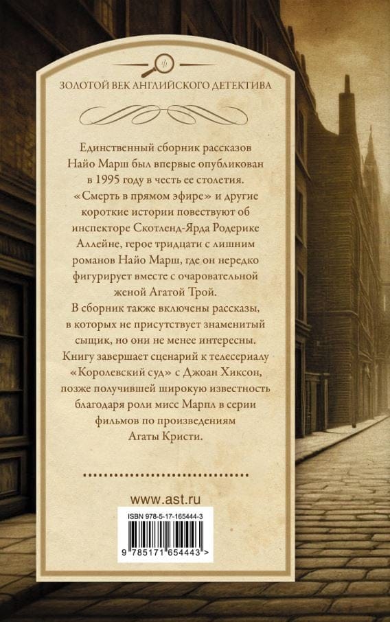 «Смерть в прямом эфире» и другие короткие истории повествуют об инспекторе Скотленд-Ярда Родерике Аллейне, герое тридцати с лишним романов Найо Марш, где он нередко фигурирует вместе с очаровательной женой Агатой Трой.
