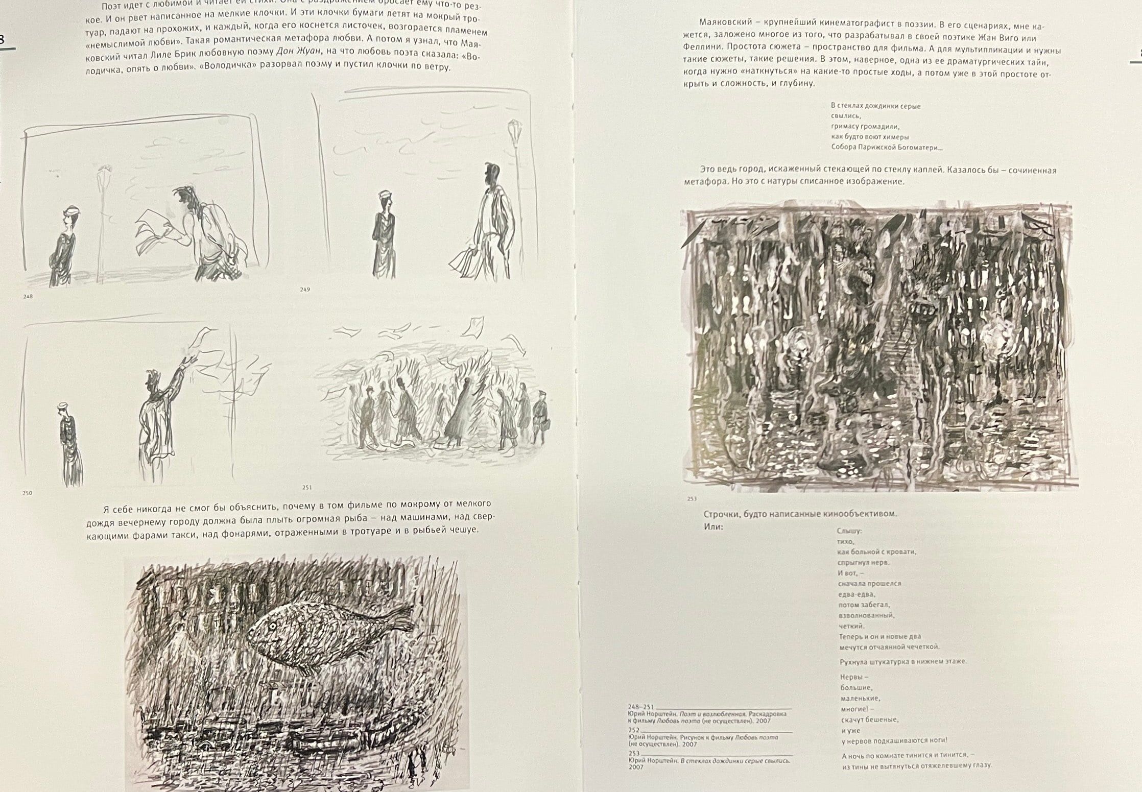 Книга «Снег на траве» составлена из лекций по искусству мультипликации, прочитанных в разное время в Москве, на Высших курсах сценаристов и режиссёров, и в Японии, в Токио на занятиях по мультипликации. В книге большое количество рабочих эскизов, рисунков, связанных с работой над фильмами и подробный разговор о шедеврах мирового искусства (Гойя, Дали, Веласкез, малые голландцы, Микеланджело, Федотов, Соломаткин и многие другие). Эта книга — желание доказать, что мультипликация связана с общей культурой и имеет исторический контекст с феноменом искусства. Название «Снег на траве» никакого отношения к фенологии не имеет, если, конечно, явление природы не приравнивать к явлению искусства или наоборот. Снег на траве — что может быть более противоположное. Но на разводке явлений и их касании, отражённых твоим воображением, бьёт разряд. Искусство — это мгновенность мирочувствия; в этот момент исчезает материальная последовательность времени, прилежная упорядоченность. Ты словно удаляешь куски времени, соединяя несоединимое. Вот почему название книги «Снег на траве».