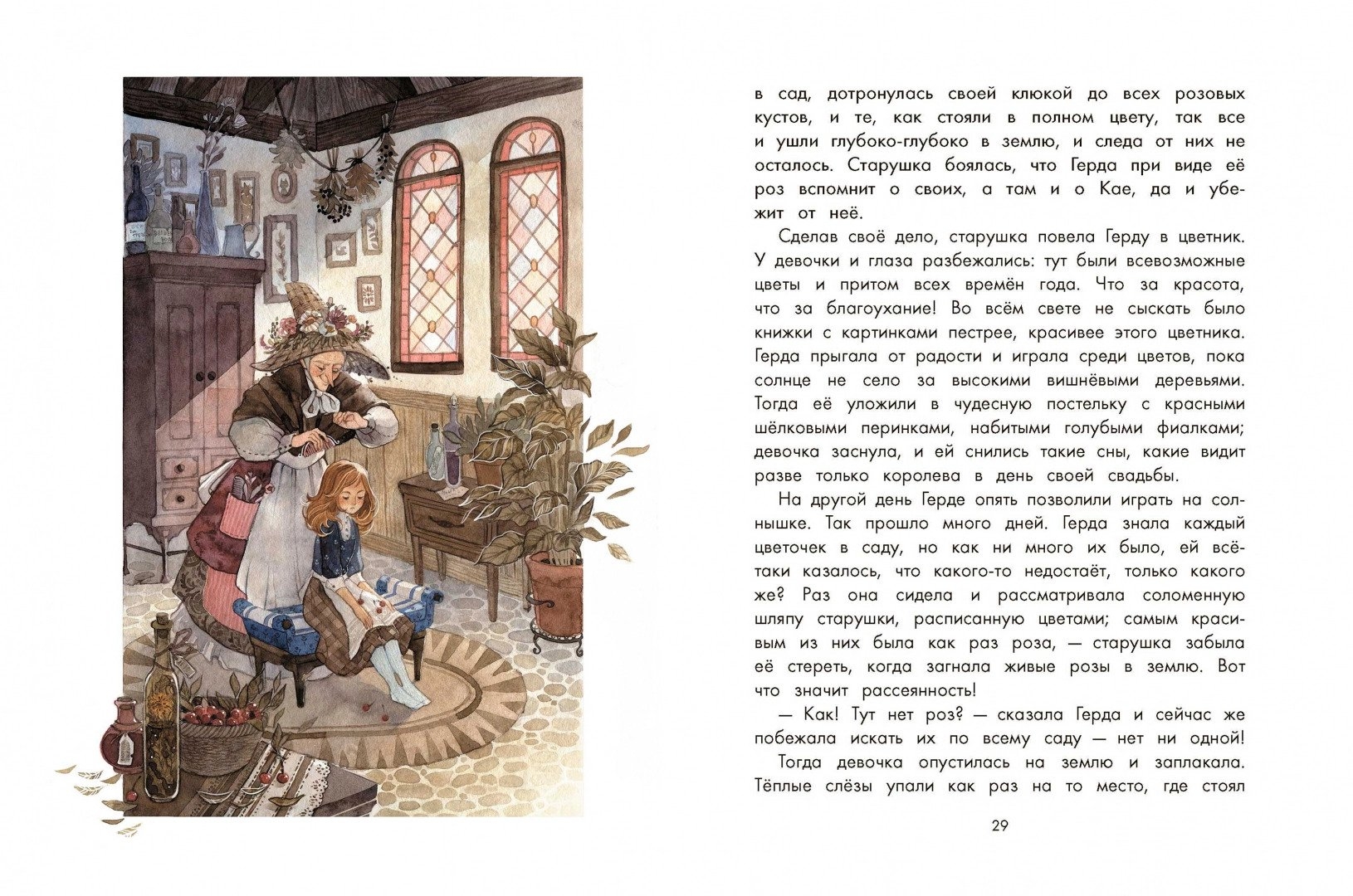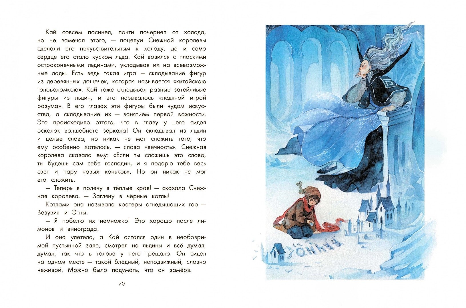 Жизнь великого сказочника Ханса Кристиана Андерсена была далеко не сказочной: бедное детство, одиночество, страх перед школой. В 14 лет он поехал в Копенгаген за славой. Думал найти её на театральных подмостках - Андерсен выступал в театре на вторых ролях, - но прославился как детский писатель. Кстати, Ханс Кристиан обижался, когда его называли «детским писателем», ведь из-под его пера выходили и романы, пьесы, стихи для взрослых. И всё же имя Андерсена навсегда связано с его сказками - добрыми, трагичными, человечными, - на которых за 250 лет выросли многие поколения. Маленькая Герда отправляется в путь, чтобы найти пропавшего Кая. Девочка не знает, что его унесла в своих санях Снежная королева, но готова идти за своим другом хоть на край света. И ей действительно предстоит долгая дорога, на которой Герде встретятся и добрые, и злые люди. Но история девочки тронет сердца всех. А главное - её любовь и преданность растопят лёд в сердце Кая, вопреки всем стараниям Снежной королевы.