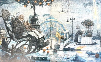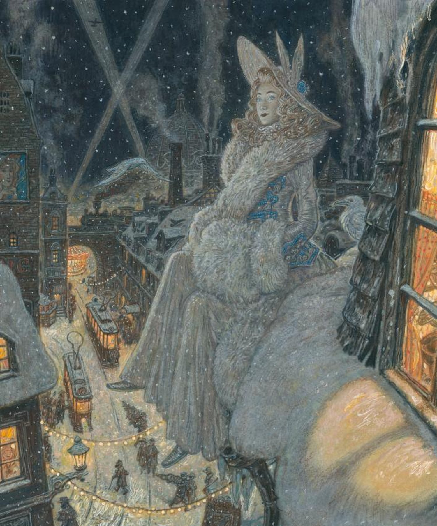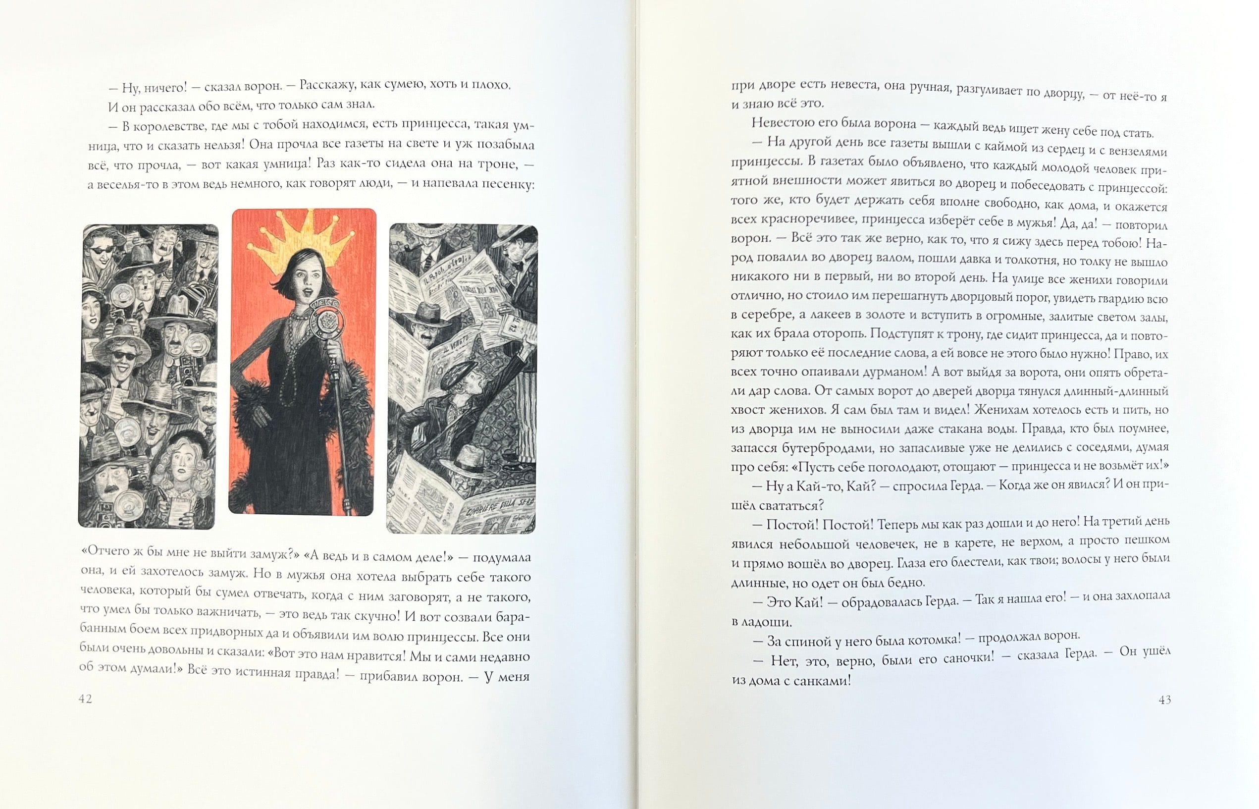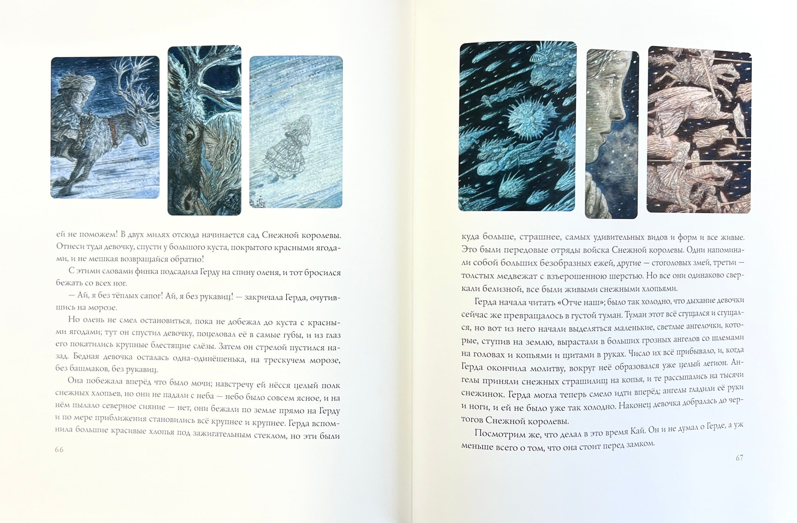 «Снежная королева» — одна из самых известных в мире сказок, вдохновлявшая многих художников. Услышав её название, невольно представляешь старинный датский городок в канун Рождества, падающий снег, сани Снежной королевы, уносящие Кая на Северный полюс… Всё это — сложившийся иллюстративный канон. Однако художник Антон Ломаев предлагает своё виденье известной сказки, перенося её действие в ХХ век. Это столетие — сложное, ужасное и прекрасное — стало испытанием на прочность для многого, что казалось людям незыблемым. В таком преломлении сказка Андерсена звучит совсем иначе, заставляя читателя заново всмотреться в знакомый сюжет. И убедиться, что он не теряет актуальности, завораживающими словами великого сказочника повествуя о непреходящих ценностях — вере, надежде и любви.