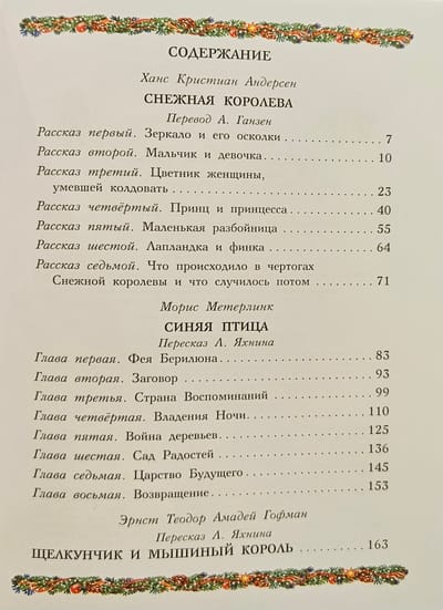 В книгу вошли три мировых литературных шедевра классической детской литературы: «Снежная королева» Х. К. Андерсена, «Синяя Птица» М. Метерлинка и «Щелкунчик и мышиный король» Э. Т. А. Гофмана. Главные герои этих сказок — дети. Кай и Герда, Тильтиль и Митиль, Мари и Щелкунчик — всем им предстоят небывалые сказочные приключения: добраться до покоев самой Снежной королевы и освободить Кая, отыскать Синюю Птицу, чтобы спасти умирающую девочку, сразиться с семиглавым мышиным королём и его войском. Но наши герои не из робкого десятка, а это значит, что они смело идут вперёд и не боятся выпавших на их долю испытаний.