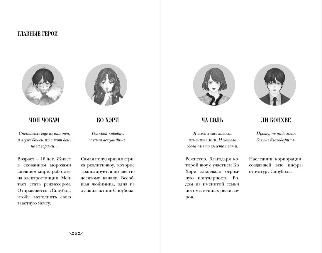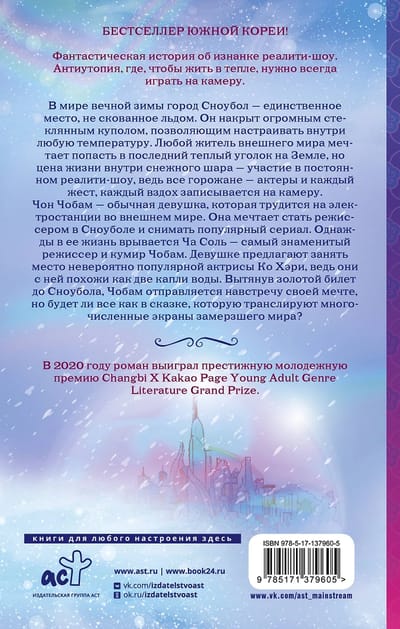 В мире вечной зимы город Сноубол — единственное место, не скованное льдом. Он накрыт огромным стеклянным куполом, позволяющим настраивать внутри любую температуру. Любой житель внешнего мира мечтает попасть в последний теплый уголок на Земле, но цена жизни внутри снежного шара — участие в постоянном реалити шоу, ведь все горожане — актеры и каждый жест, каждый вздох записывается на камеру. Чон Чобам — обычная девушка, которая трудится на электростанции во внешнем мире. Она мечтает стать режиссером в Сноуболе и снимать популярный сериал. Однажды в ее жизнь врывается Ча Соль — самый знаменитый режиссер и кумир Чобам. Девушке предлагают занять место невероятно популярной актрисы Ко Хэри, ведь они с ней похожи как две капли воды. Вытянув золотой билет до Сноубола, Чобам отправляется навстречу своей мечте, но будет ли все как в сказке, которую транслируют многочисленные экраны замерзшего мира?