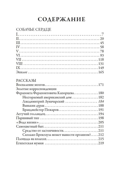 Помимо знаменитой повести «Собачье сердце» Михаила Афанасьевича Булгакова, которая печатается по последней выправленной автором машинописи, в книгу включены двенадцать рассказов писателя, в том числе из цикла «Золотые корреспонденции Ферапонта Ферапонтовича Капорцева» и «Самоцветный быт». Повесть проиллюстрирована динамичными рисунками талантливого современного художника Максима Поповского, рассказы — рисунками, выполненными Николаем Эрнестовичем Радловым (1889–1942).