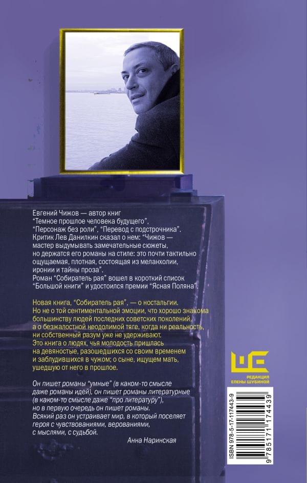 Евгений Чижов — автор книг “Темное прошлое человека будущего”, “Персонаж без роли”. Предыдущий роман, “Перевод с подстрочника”, вошел в шорт-лист крупных литературных премий и удостоился премии “Венец” Союза писателей Москвы.