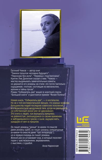 Новая книга, “Собиратель рая”, — о ностальгии. Но не столько о той сентиментальной эмоции, которая хорошо знакома большинству людей последних советских поколений, сколько о безжалостной неодолимой тяге, овладевающей человеком, когда ничто человеческое над ним более не властно и ни реальность, ни собственный разум его уже не удерживают. Это книга о людях, чья молодость пришлась на девяностые; о тех, кто разошелся со своим временем и заблудился в чужом; о сыне, ищущем мать, ушедшую от него в прошлое.