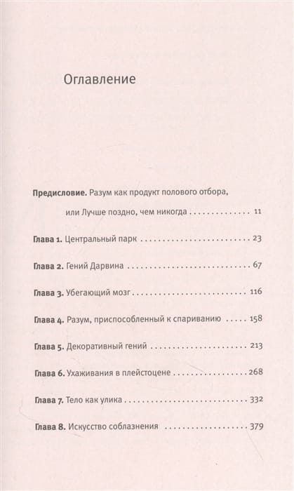 Стройно объяснить происхождение разума не удавалось еще никому. В этой концептуальной книге эволюционный психолог Джеффри Миллер выносит на суд общественности свою оригинальную идею — теорию происхождения уникальных умственных способностей человека в ходе полового отбора. Ключевым механизмом отбора автор считает выбор полового партнера, который осуществляли доисторические гоминиды и продолжаем осуществлять мы, современные мужчины и женщины. Сложный язык, мораль, искусство, благотворительность очень затратны для особи и не способствуют ее выживанию. Зато способствуют ее размножению: это самые надежные индикаторы генетического благополучия, какие только можно предъявить на брачном рынке. Аргументы Миллера научны, изящны и образны. Если вы мечтали взять откровенное интервью у шалашника и увидеть охоту плейстоценовых гоминид глазами мамонта, осознать неполиткорректность эволюции и древность «дизайнерского» деторождения, эта книга точно для вас.